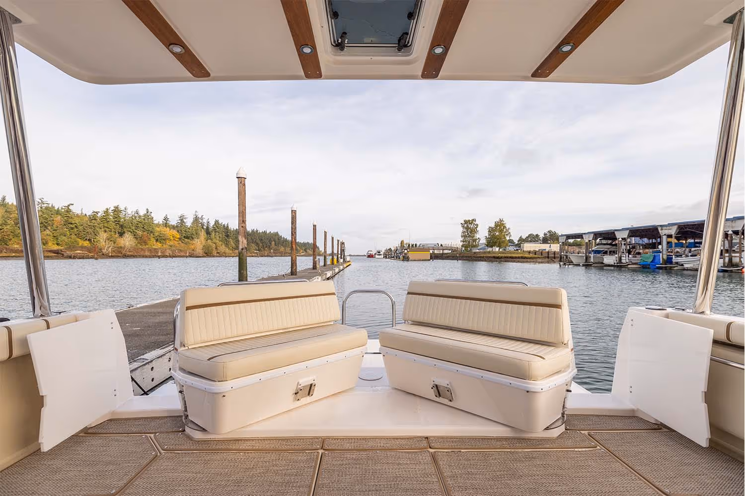 - Safety kit: fenders, lines, flares, fire ext, first aid kit, life jackets, boat hook